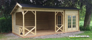 Blokhut met een puntdak en luifel compleet met fundering. Deze blokhut is gemaakt volgens de [...]